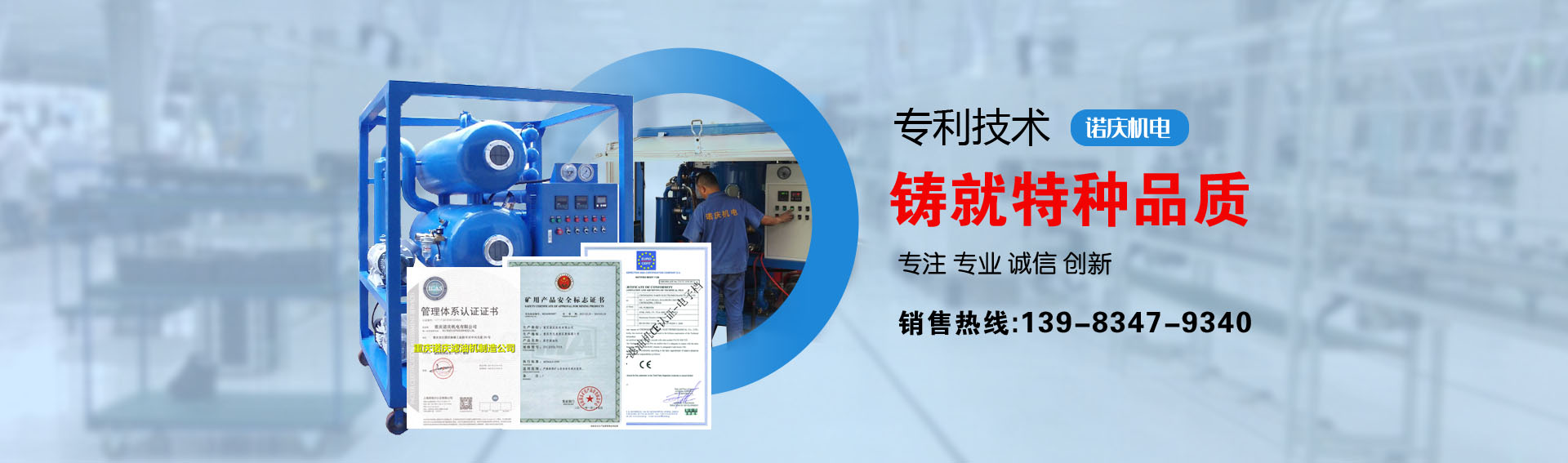 公司通過(guò)ISO9001-2015質(zhì)量管理體系認(rèn)證,CE歐盟認(rèn)證,諾慶公司所有濾油機(jī)配套產(chǎn)品均采用國(guó)內(nèi)外知名品牌,經(jīng)過(guò)多年的使用,具有質(zhì)量可靠,性能優(yōu)良。公司擁有完備的檢測(cè)儀器和檢測(cè)設(shè)備,所有產(chǎn)品出廠前經(jīng)過(guò)嚴(yán)格測(cè)試,保證每一臺(tái)產(chǎn)品合格出廠。